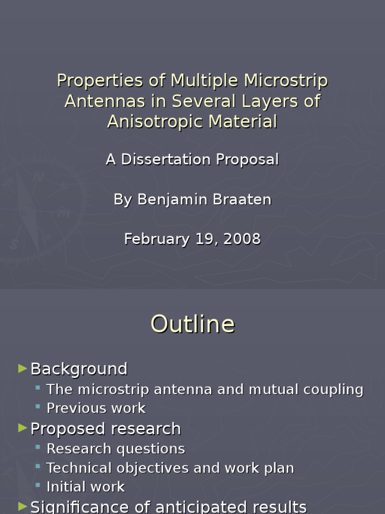 - • research proposal is an outline of your proposed project • makes an positive & powerful first impression • considerable factor in accepting your phd proposal for university accepting phd students onto a research programme depends on many factors, such as nature of your proposed research, the quality of your ideas, your ability to commit to an Outcomes of a PhD proposal defense There are about 4 possible outcomes after the student presents and defends his proposal: The proposal passes with minor or no corrections. The proposal passes with major corrections. The student retakes the proposal by re-writing it (may include change of topic) and defending it again. The proposal is rejected A typical research proposal presentation is only 10 minutes in length with an additional 5 minutes or more for questions and answers. It must be able to cover all aspects of your paper within that time. The presentation will need to cover all of the following areas